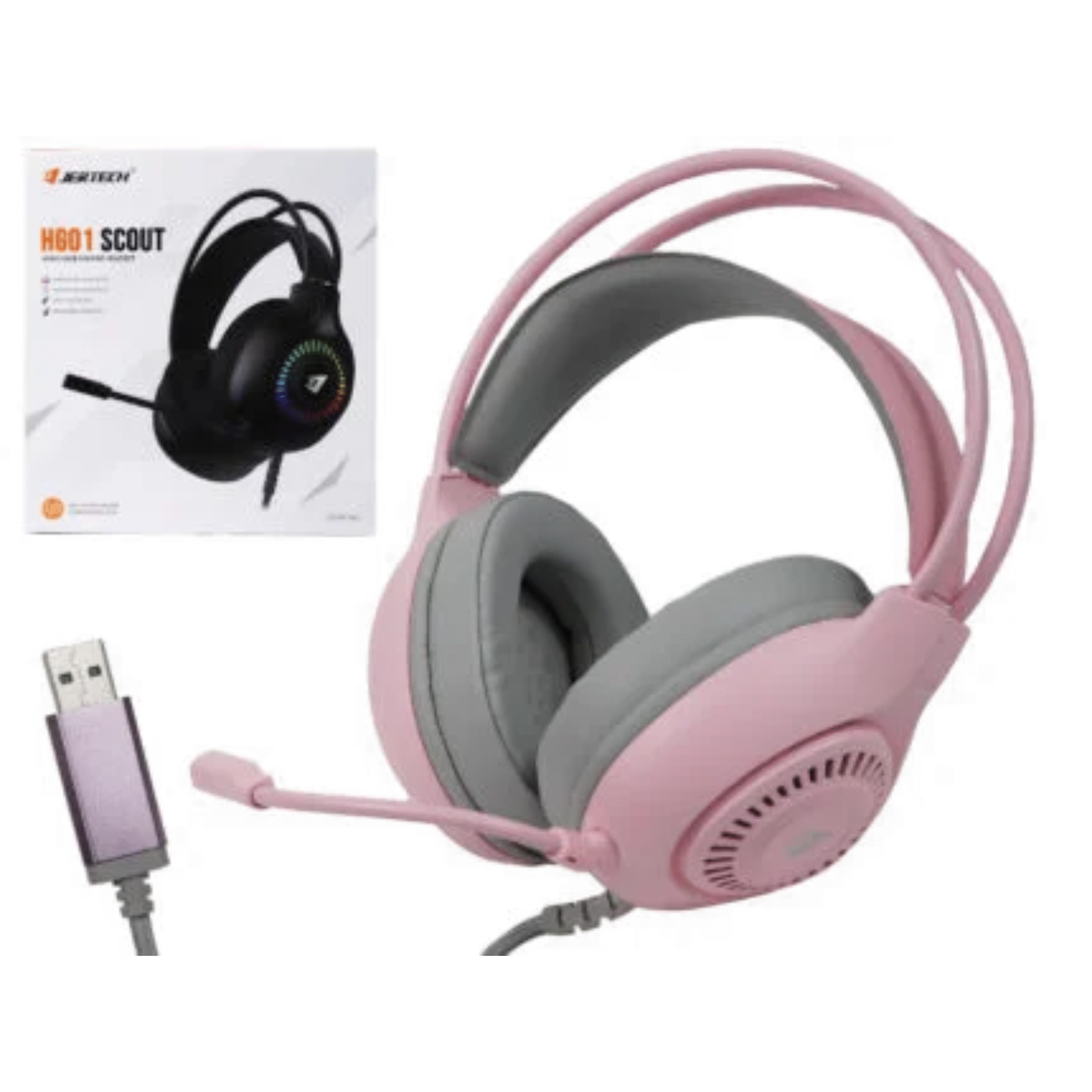 Audífonos diadema gaming rgb jertech hg01 rosado