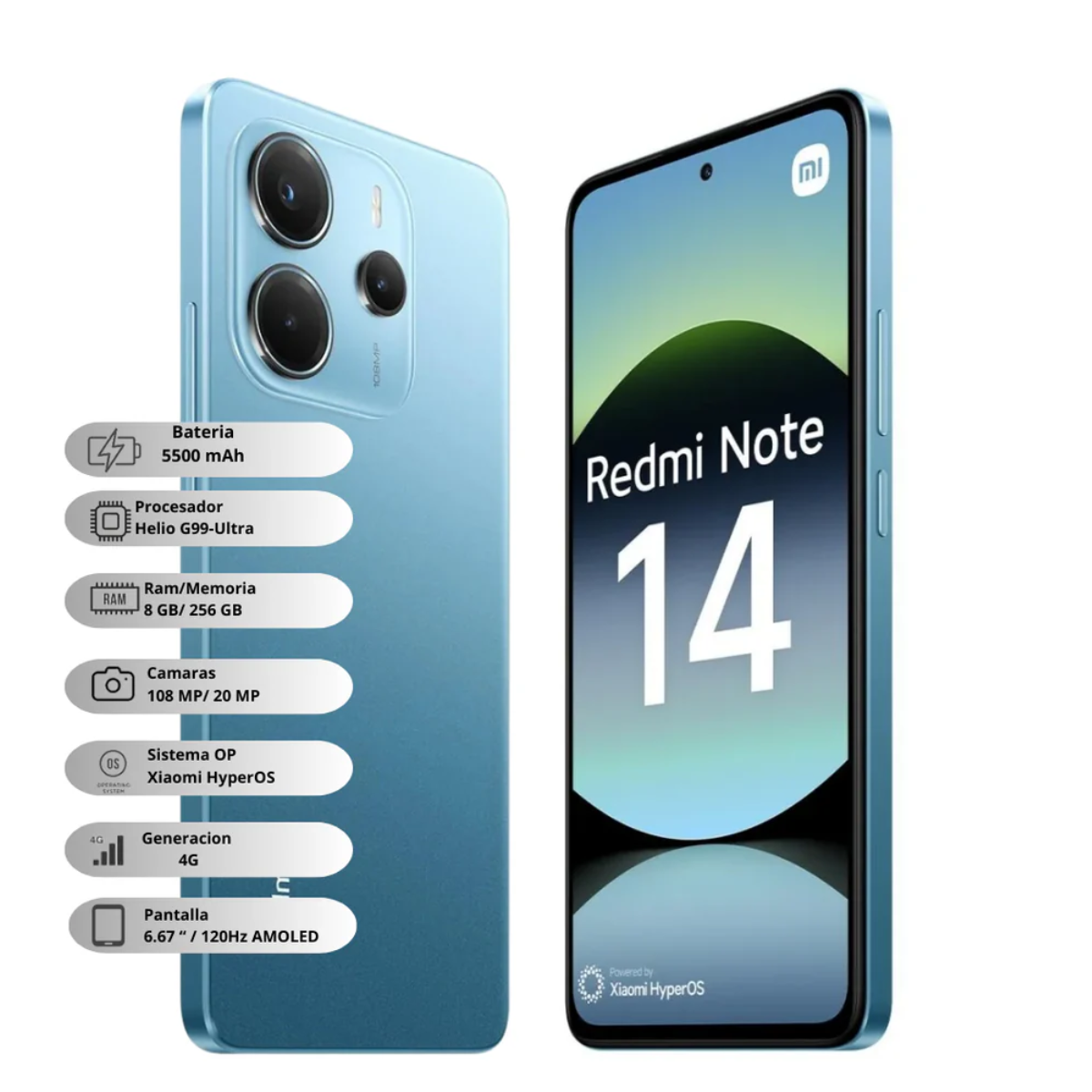 Celular xiaomi redmi note 14 4g 256 gb 8 ram azul
