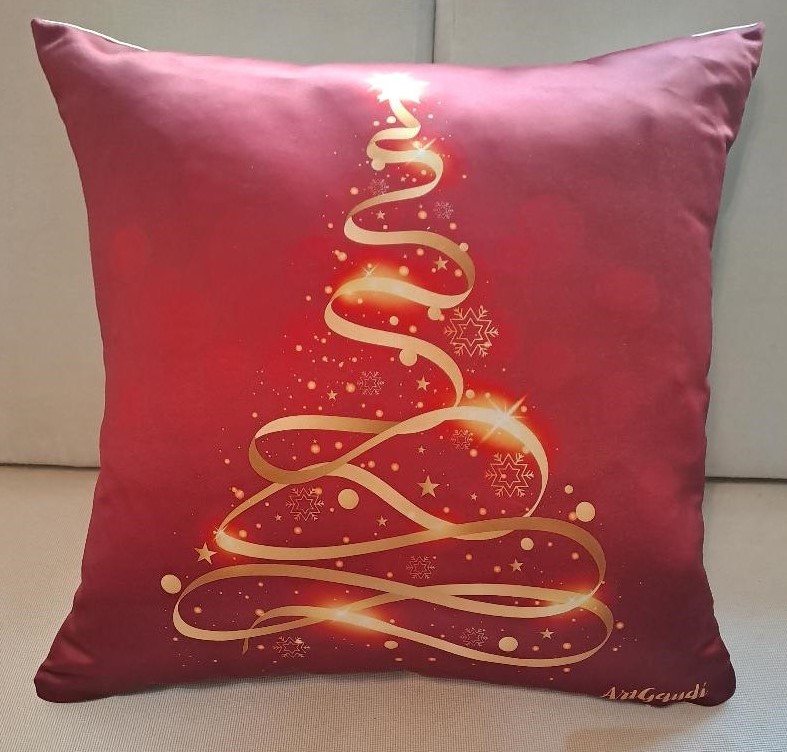 Cojín navideño rojo con detalles dorados que aporta calidez, color y un toque festivo a tu hogar.