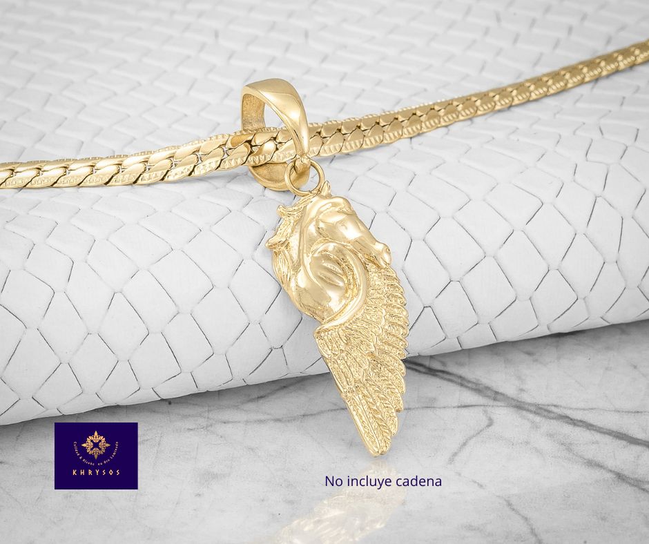 Dije de Pegaso en oro laminado 18k con detalles en alto relieve símbolo de libertad y elegancia con garantía de por vida.