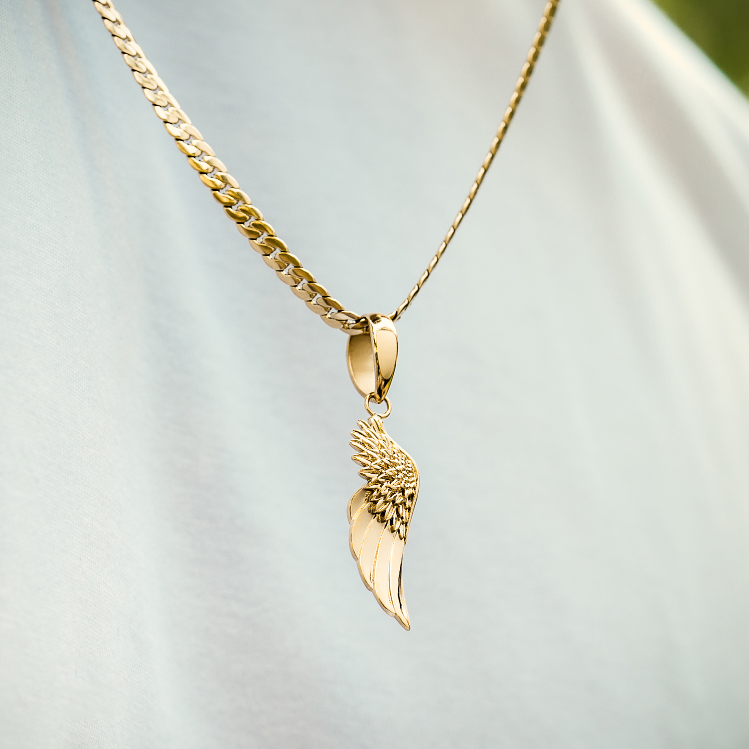 Dije elegante en oro laminado con relieve símbolo de libertad y protección con garantía de por vida.