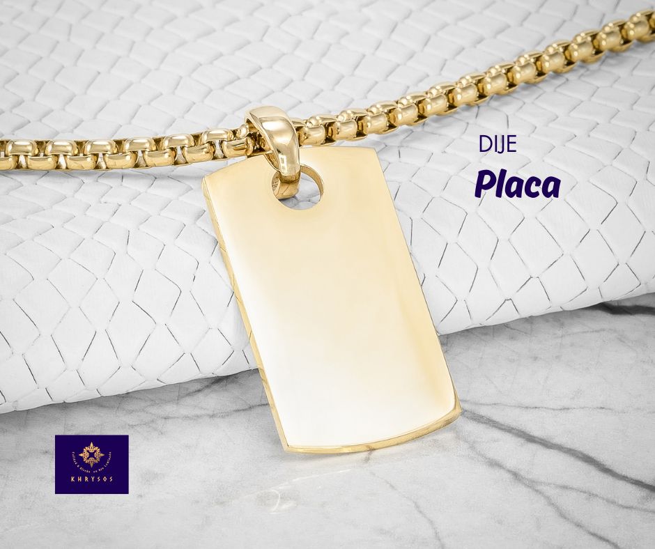 Etiquetas: dije rectangular, joya grabada, medalla con nombre, placa oro laminado, placa personalizable