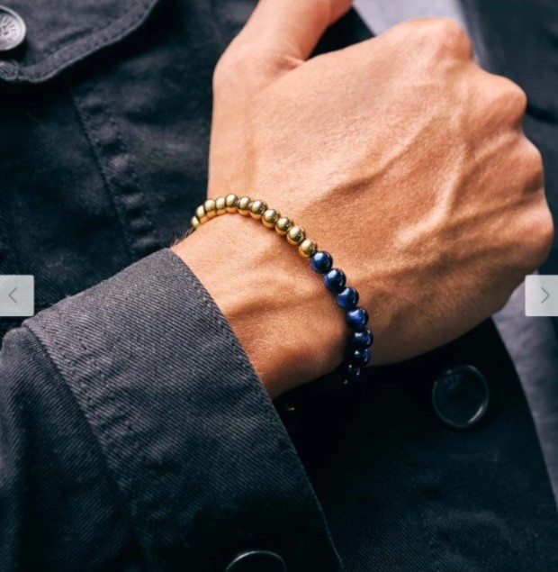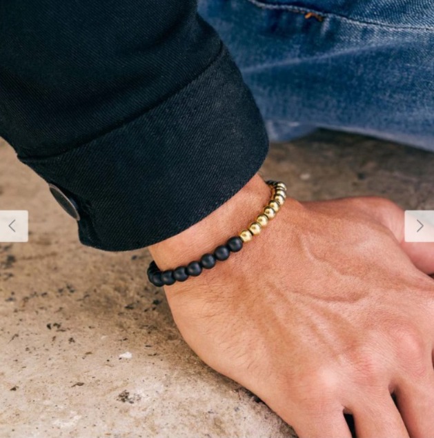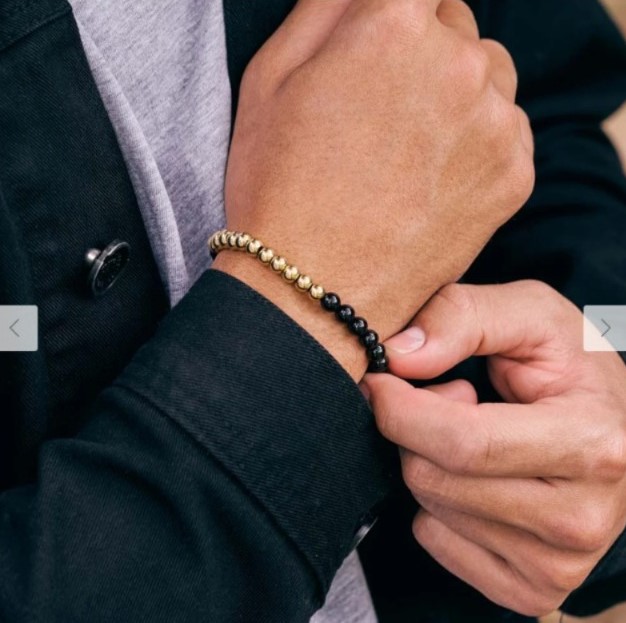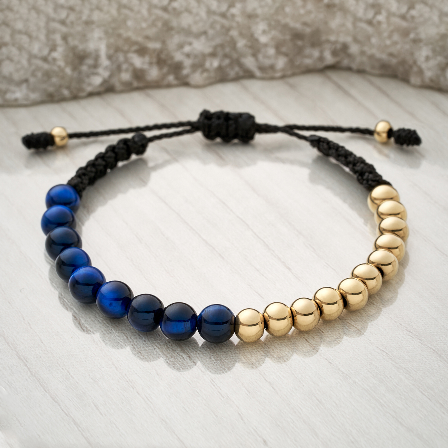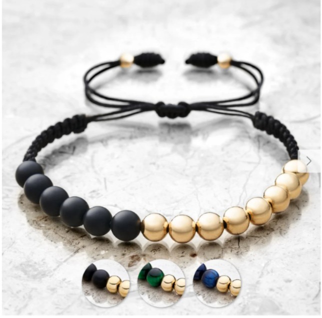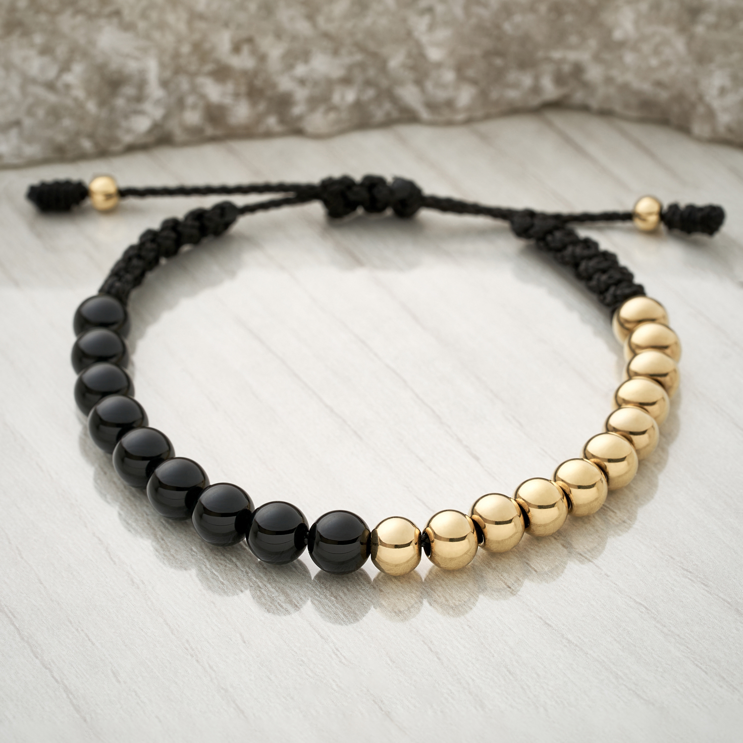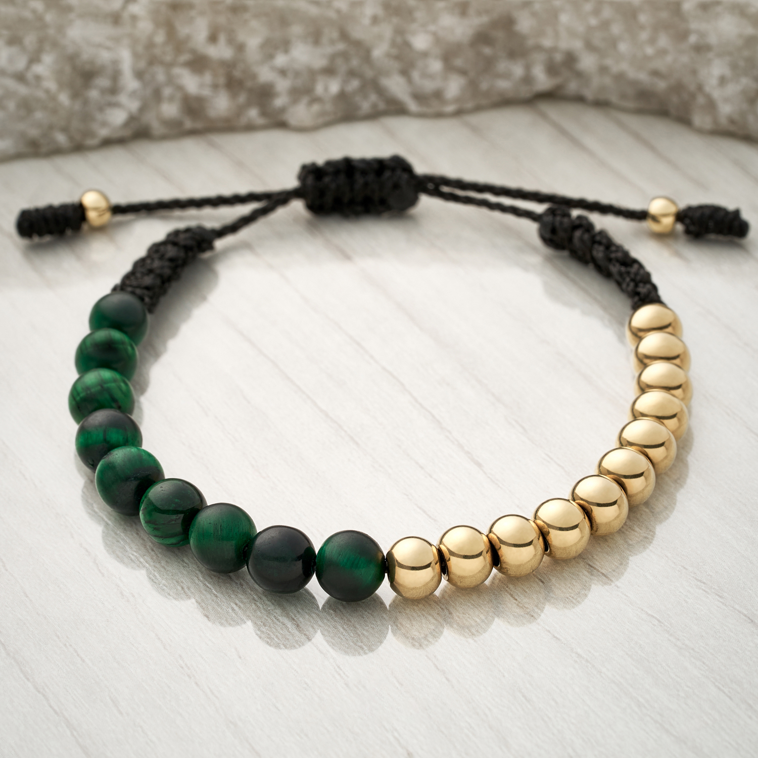 Pulsera con diseño mitad oro laminado y mitad piedra natural. Elegancia moderna con brillo italiano y garantía de por vida.